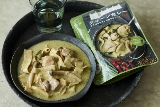 タイハーブ香る本格グリーンカレーには、ほろほろのチキンとしめじ・たけのこがたっぷり。